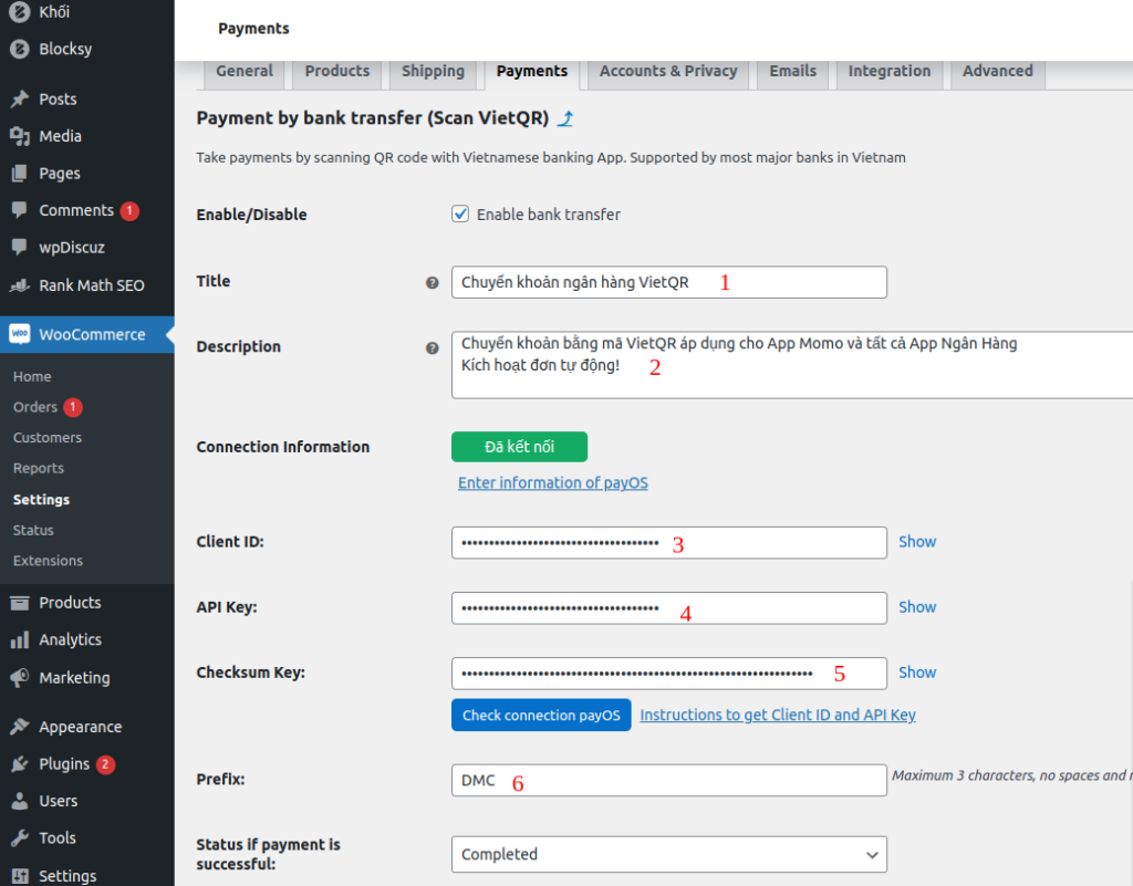 Sau khi điền xong. Nhấn Check connection payOS để kiểm tra thông tin. Nếu đúng rồi thì chúc mừng, bạn đã tích hợp thành công!