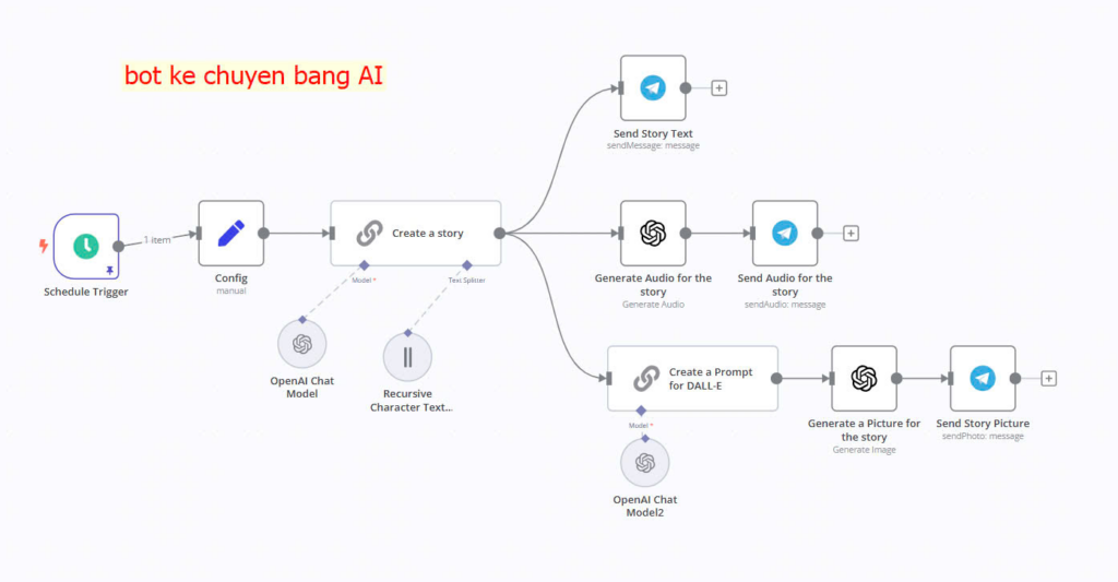 Kết hợp AI để tạo câu chuyện sau đó là tạo audio gửi về Telegram