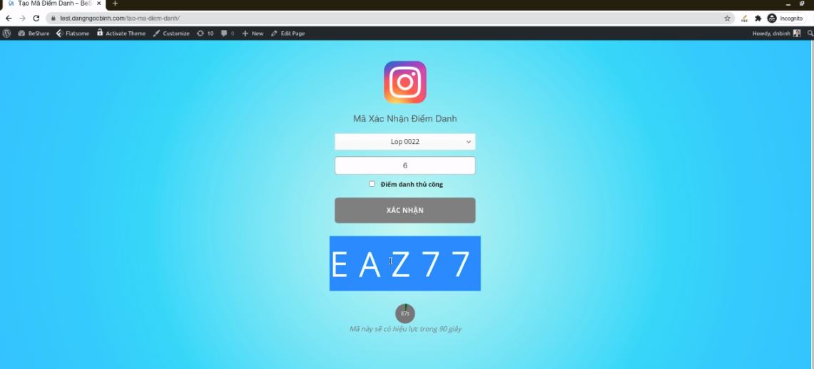 Giáo viên vào mỗi đầu buổi học hoặc cuối buổi sẽ mở link để học viên điểm danh. Học viên sẽ nhìn thấy mã xác nhận điểm danh trên màn hình máy chiếu và xác nhận mình đã tham gia buổi học đó